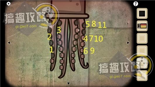先点击最左边的触手直到剩下一个吸盘没有突出,点击左边第二根触手完成左边的两根触手,最后一直点击最右边的触手直到吸盘全部突出。