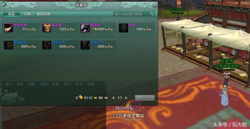 最后还有一套可能大多数小伙伴不知道的马具奔雷马具,是潼关军声望可换得的马具,而在声望一览并没有看到,大家到战乱风华谷这个位置找NPC李卫,选择声望物资可以看到,不同的等级可以兑换不同的位置的马具,一套下来9000J,个人觉得比较好看很适合天策。