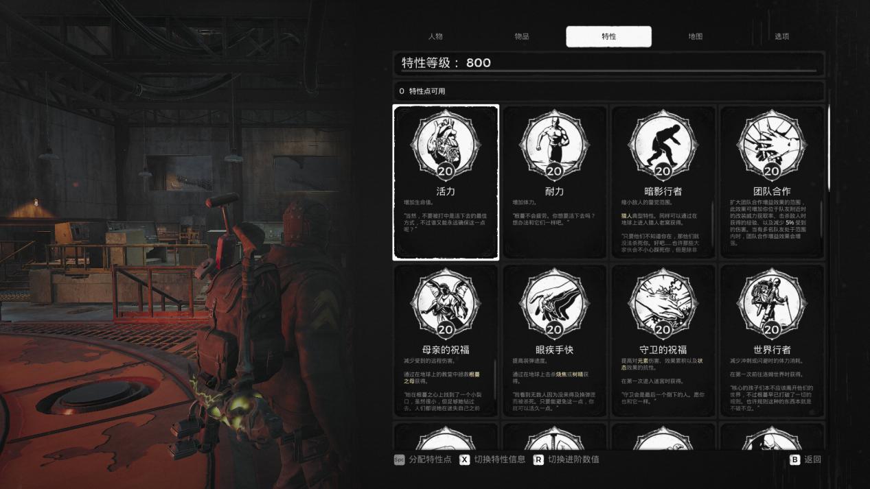 《灰烬重生》还有一个更容易被人记住的称号:"射击版黑暗之魂",正如称号里提到那样,就算不谈射击为主的优秀战斗机制,《灰烬重生》光是角色培养方式就足以比肩一线ARPG。游戏开局有三类职业可选,各自专精远距、支援、近战多个方面,并且其后玩家可以在战斗中解锁各类特性,并且在升级后用特性点进一步强化这些能力,为人物打造出千变万化的Build。