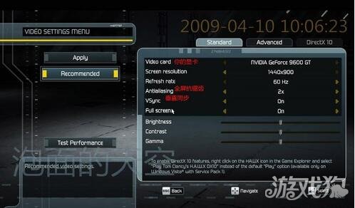 在报纸上看了《H.A.W.X》的评测,用的是酷睿E7200配9800GTX(或4850)以及GTX285显卡,视频设置开到1920*1200的高画质,8倍抗锯齿,9800级别帧数仅20,GTX285可以维持在30。想必大家拥有这样显卡的,还是少数,600-700价位显卡的应该居多,下面就以我的机器,给大家设置上的参考,对自己的机器,心里也有个数。
