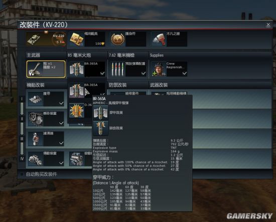 炮弹用的是T-34-85的进阶弹,后效惊人……缺少硬芯弹不过影响不大……