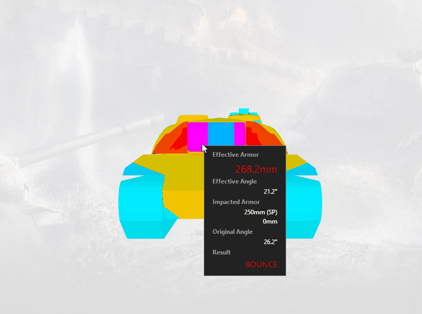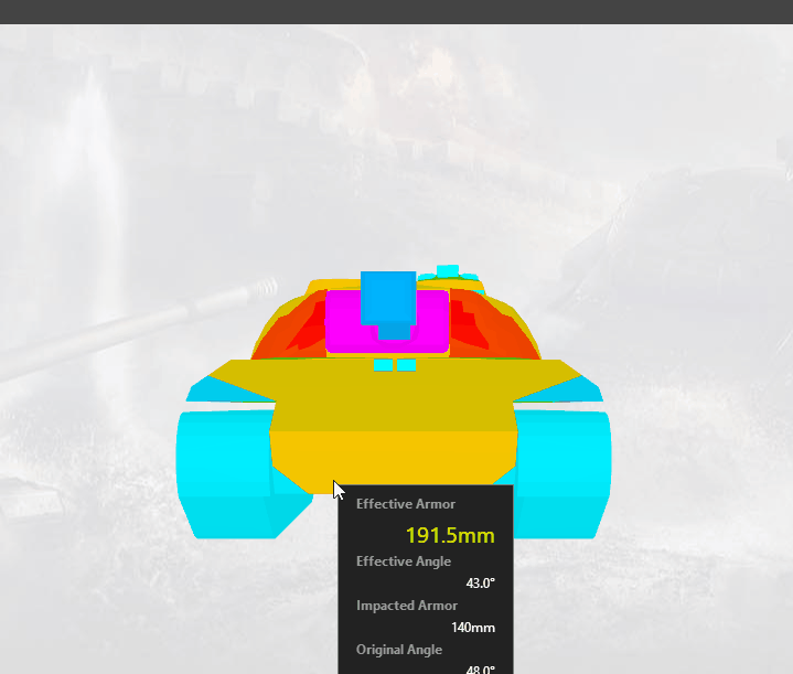 112的装甲相比于自己的老大哥WZ-111要靠谱一些,与WZ-111不同的是,112并没有采用正面更容易跳弹的楔形装甲,而是采用常规的倾斜装甲。120mm的首上装甲等效在270mm-290mm之间,能抗住绝大部分八级车的金币弹了,首下装甲在190mm左右,稍微摆一摆也能跳几发同级车的银币弹。