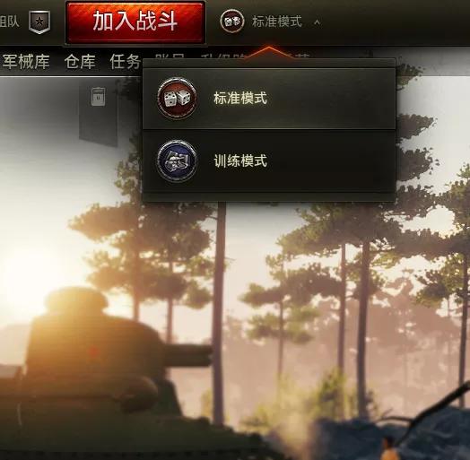 《坦克世界》有多种战斗模式。新玩家可选择:标准模式或训练场。您可以在下拉菜单内选择不同的战斗模式。