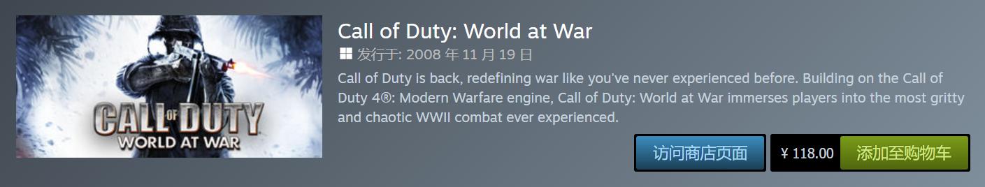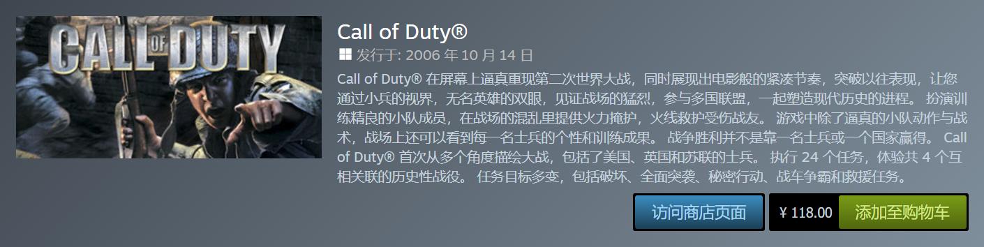 今天,爷青回的愿望终于实现了:Steam 平台上大部分《使命召唤》游戏解锁了国区!!
