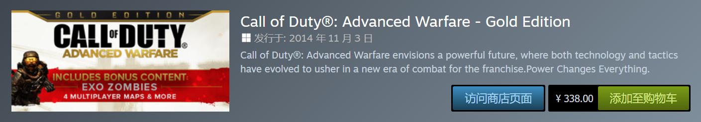 目前,《使命召唤》、《使命召唤2》、《使命召唤4:现代战争》、《使命召唤5:战争世界》、《使命召唤7:黑色行动》、《使命召唤10:幽灵》、《使命召唤11:高级战争》、《使命召唤12:黑色行动3》、《使命召唤13:无限战争》、《使命召唤14:二战》等游戏和 DLC 已经可以在 Steam 国区购买。