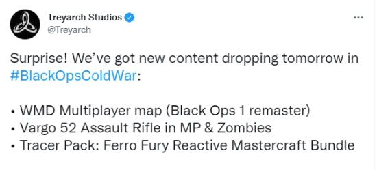 对于喜欢《冷战》的玩家来说这无疑是一个惊喜,因为动视几乎从未为一款《使命召唤》提供一年以上的更新服务。玩家猜测这可能和《使命召唤:先锋》表现欠佳以及动视宣布2023年不会推出新的《使命召唤》有关。