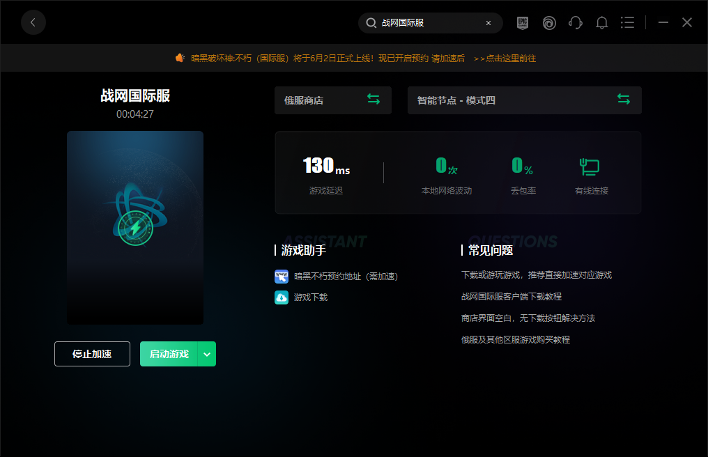 战网国服跟国际服还完全不同的,玩家需要选择加速除“国服商店”以外的其他区服。