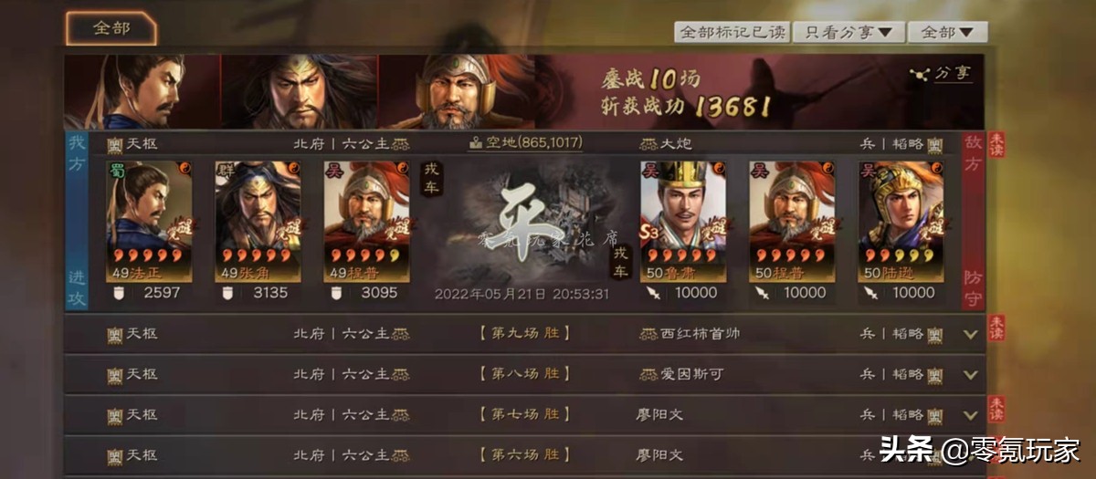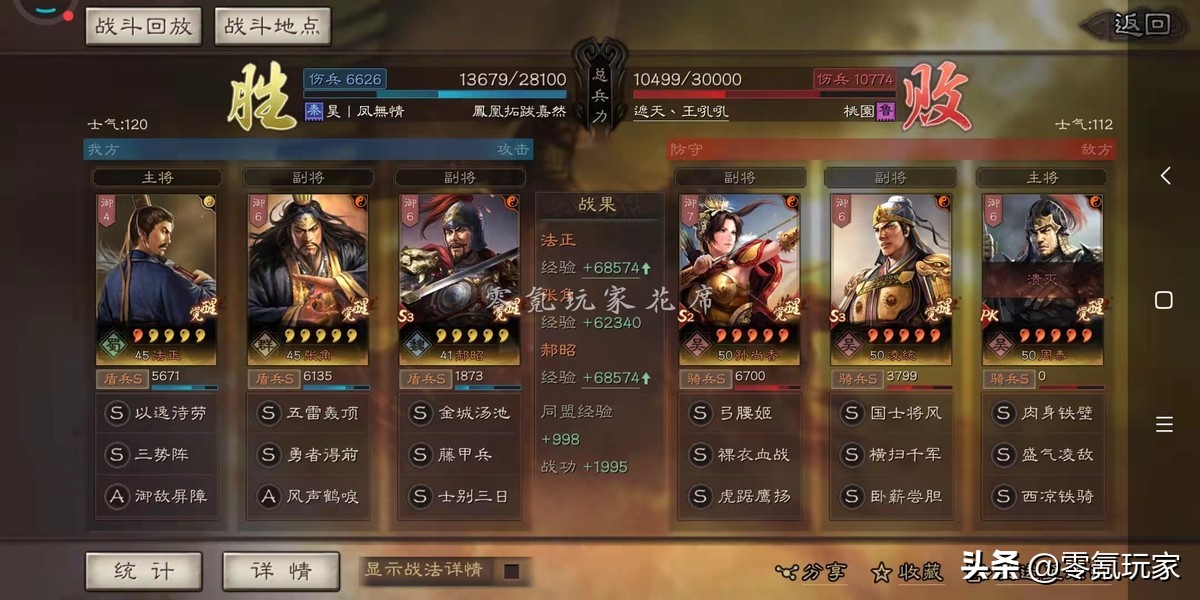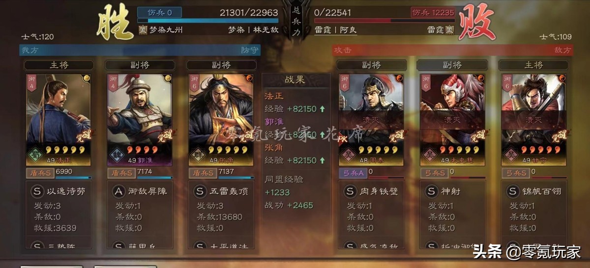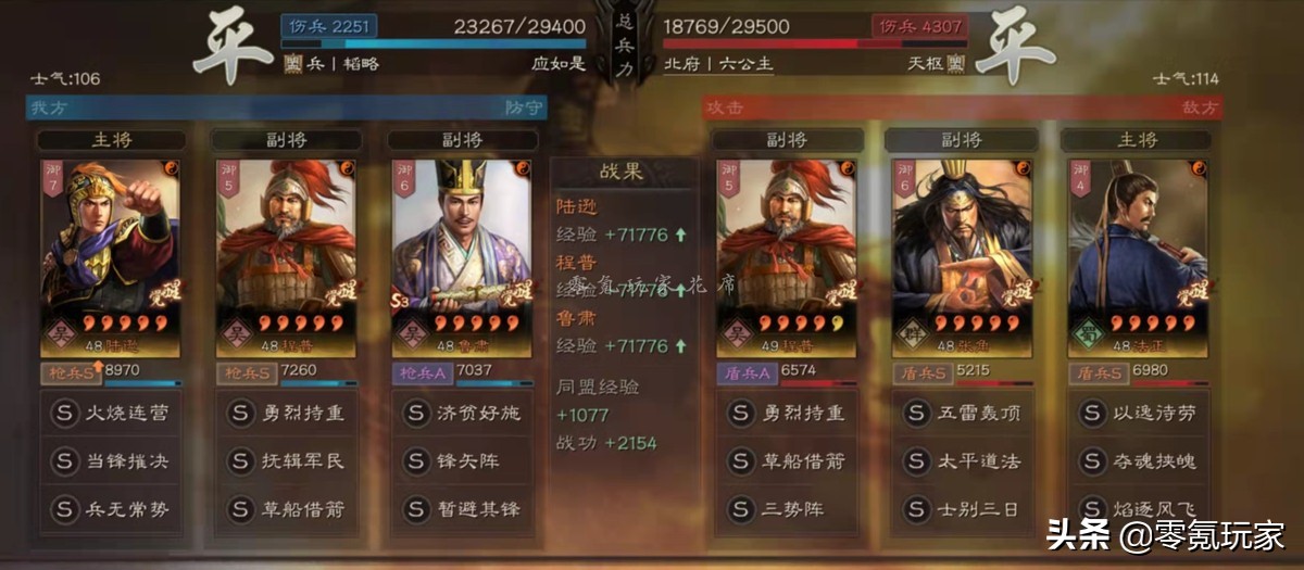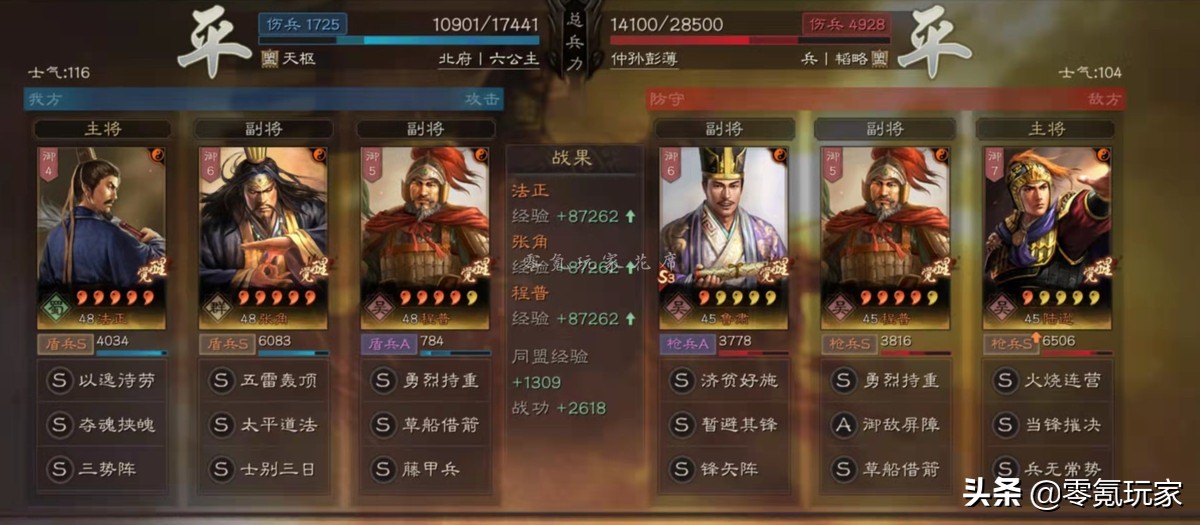 这个玩法由梦染林无敌提供,张角、法正都是白板,只有四星郭淮是满红,算是平民最低配置的队伍。