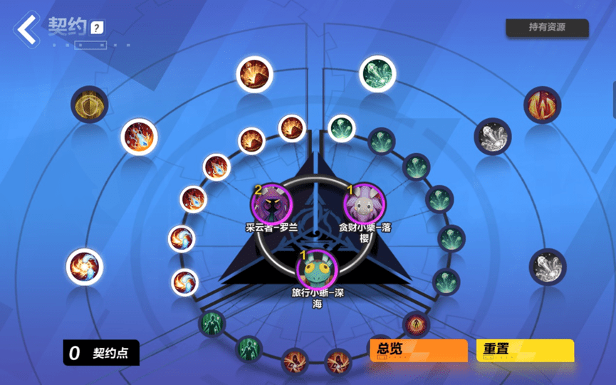 在技能之外,角色还有一个强化项目,同时也是本作的氪金点:契灵,契灵分蓝紫橙三种颜色,并能给角色带来各种额外的加成,