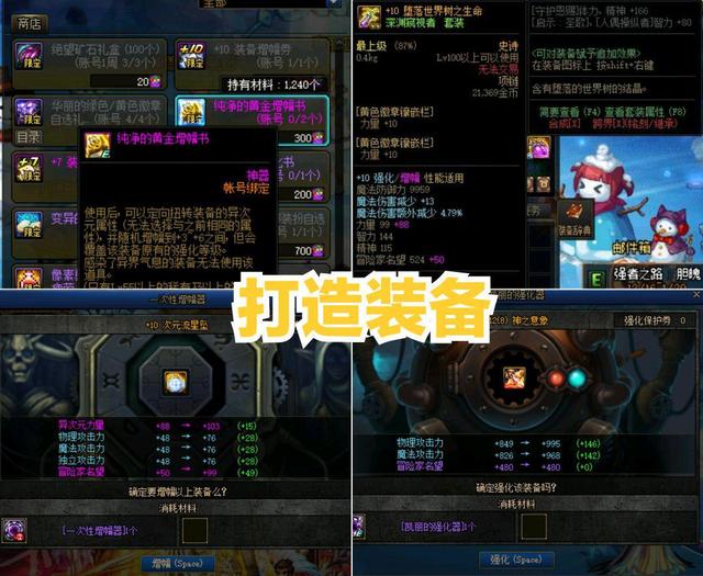获得史诗装备之后只是第一步,接下来打造装备才是重中之重。增幅可以增加面板属性,这是必不可少的,镶嵌徽章以及附魔都需要精雕细刻。