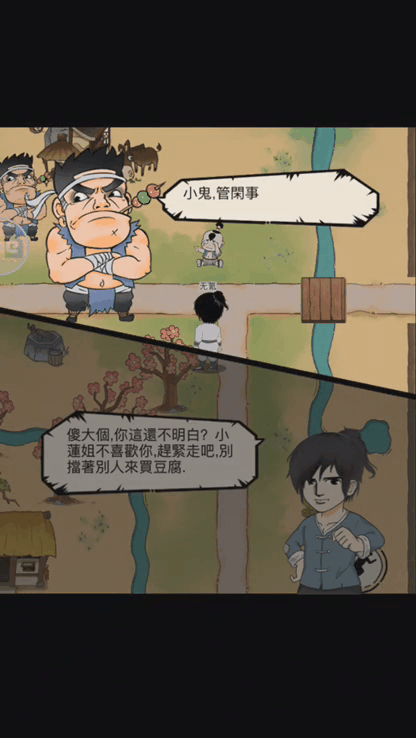 一款画风简单搞怪的武侠手游,有剧情,有一定的自由度。游戏讲述了玩家扮演的主角穿越回古代,成为大侠的故事。