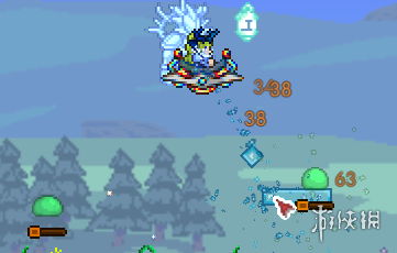 没打到怪就会在空中出现冰块,持续一段时间。攻击不高但有妙用拦怪,还可以拿来和基友联机玩 “是男人就上一百层” 游戏。
