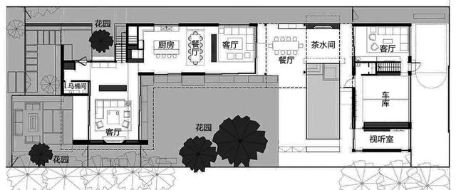 大量运用绿植装饰是这套别墅的特点之一;这当中除了围墙外的花圃,设计师更在围墙内打造了三个规模、功能各不相同的小花园。