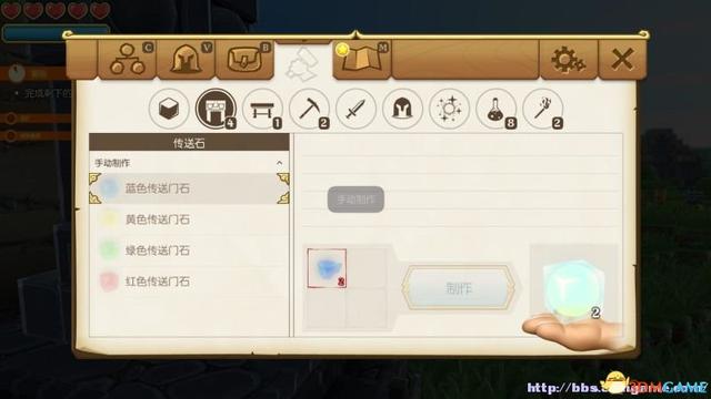 使用工作台可以对方块&配方、传送石、工作台&家具、工具、武器、装备、技能、消耗品、杂项进行制作。而升级工作台,则可以获得更多物品的制作,譬如能够制作出更加厉害的装备、华丽的家具等。