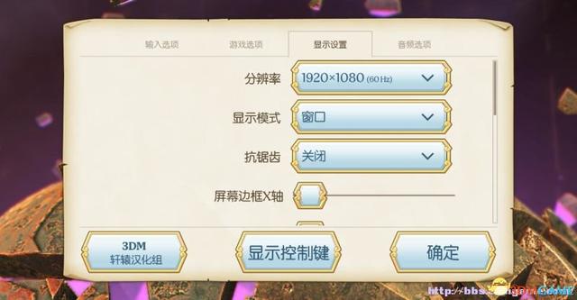 分辨率:调整适合你的显示器和主机硬件的分辨率及帧率。