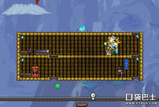 需求:新三王矿车,纵横整个地图的空中折返铁轨(不能高到吸引到哈比,也不能低到吸引到地面小怪),雪人大炮(狙击枪+叶绿弹也行),甲虫防御套,炼金戒指,忍者极意,星辰项链等大幅提高你生存能力的饰品。