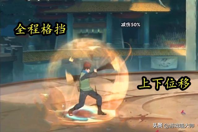 猿飞木叶丸挥舞金箍棒时,游戏认定为进入格挡状态,自动减伤百分之50!这还没结束,木叶丸格挡期间可以进行上下左右的位移,而且持续时间大概在6秒左右,这和新春雏田的无敌回天有相似作用。