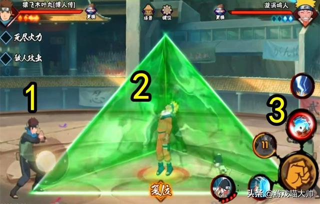 先来讲忍术模式二技能三方封印,的确这是个大范围抓取技能,木叶丸使用影分身之术另外召唤两个分身,形成三角封印!值得一提的是,在技能结束阶段,木叶丸可以与场中分身任意交换一次位置,并形成短时间三个分身聚齐状态,俗称“三花聚顶”?
