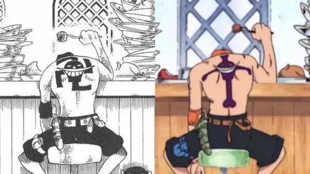 艾斯的背上有一个白胡子海贼团的标志,但它的最初版本并不是这样,背后的十字形其实是一个"卍"字。