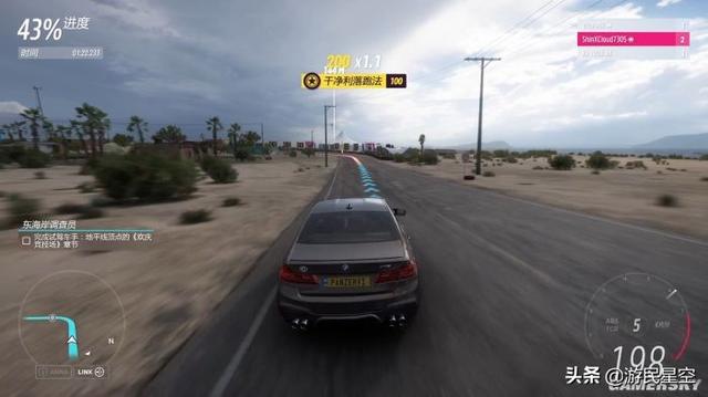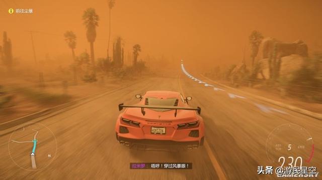 镜头一转,一辆雪佛兰科尔维特超跑正处于我的操控之下,发动机产生的怒吼在耳机中涤荡,驶过砂石路时的震动通过手柄完美传达到指间。为了能更加享受这种令人陶醉的沉浸感,我将操控设备换成了方向盘,此时,我仿佛与狂野的墨西哥融为一体,所能感受到的只有速度、赛道以及路旁一闪而过的尘埃……正当我因赛车达到极速而愈发小心翼翼时,前方的道路忽然尘土弥漫,一辆运动飞机拉着烟雾,将我引导至沙尘暴中……