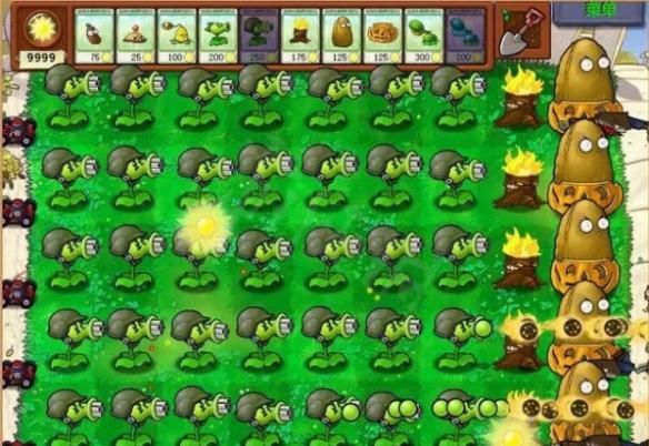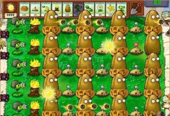 在高坚果与土豆间的位置,一排种上高坚果,另一排种上土豆,最后一排种上四发的豌豆射手。等到僵尸们好不容易啃下高坚果时,后面的土豆地雷等着在,再后面还是一样,不来多少僵尸,永远没法打到最后……