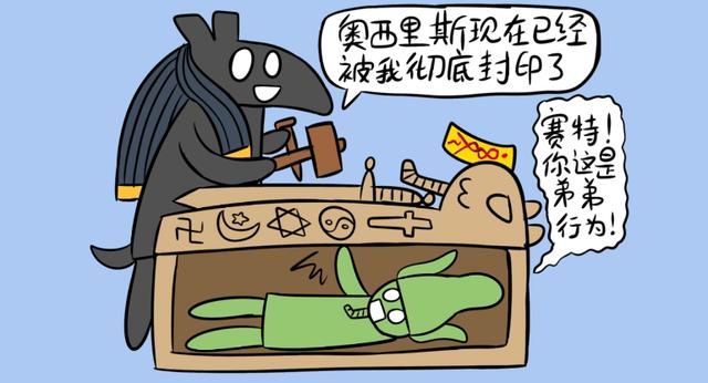因为奥西里斯的丁丁始终没能找到,因此复活后的奥西里斯缺失了重要的生命力,就像傍晚的落日。而他的儿子荷鲁斯,这个名字具有冉冉升起的太阳这个含义,他与象征夕阳的奥西里斯恰成对比。实际上拉被视为正午的太阳,是一切生命的创造者,奥西里斯是沉入大海的太阳,是掌管死亡的冥界之神,而荷鲁斯则是新生的太阳,他法老的守护神,这三个神实为一体,象征太阳的三种形态,是一个完整的循环系统,表示了一个轮回再生的观念,也是古埃及宗教的核心奥义。那么在这个循环系统中,属于奥西里斯的梅杰德神他的作用是什么呢?让我们回到奥西里斯复活这个神话故事中: