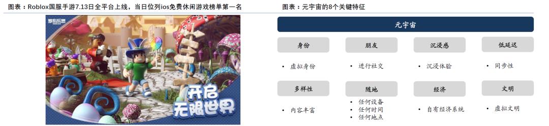 Roblox是首家在招股书中提到元宇宙的公司,并提出了“元宇宙”的8大要素,即身份、朋友、沉浸感、低延迟、多样性、随地、经济、文明。