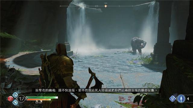 其次游戏的美工和艺术设定极为强悍,几乎就是把很多人对于希腊神话的想象具象化,在PS2主机末期做到接近PS3的画面水准,而神圣的交响乐与合唱也总是适时响起,声画的完美配合为玩家的投入度推波助澜,另外游戏在节奏把握上达到美式ACT空前的高度,玩家的情绪会为宏观设计与各种细节所调动,而在动作设计方面的做法也很聪明,柔中带刚的链刃在操作手感上没什么参照系,3D动作游戏常见的视角问题被电影式的固定镜头巧妙回避,在展现战斗与动作时,镜头总能找到合适的呈现角度,更重要的是,由于“圈键”的作用被最大限度地放大,动作游戏的技巧性也就更多地被神奇的表演性所替代,人们目光的聚焦点不再集中于美式ACT并不擅长的打击感上,而是对不同敌人按圈之后,各种意想不到结果的期待。