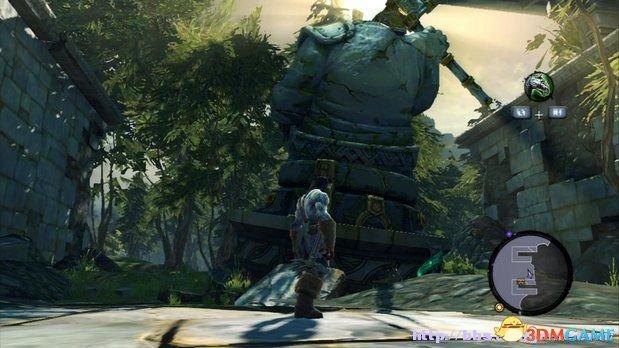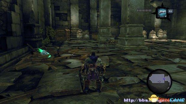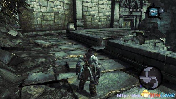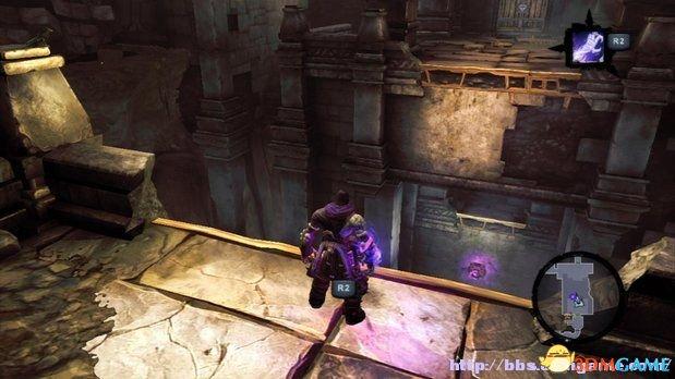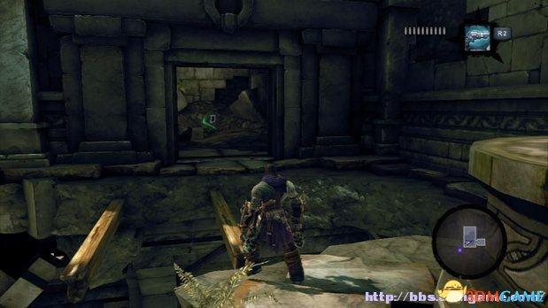 在中间雕像后部的一个缺口处,玩家需要沿着墙壁的阶梯滑行过去