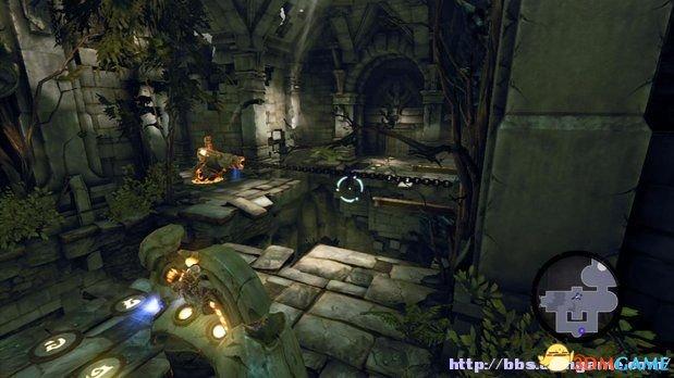 这个比较麻烦。玩家需要移动两个构造体如下图所示的位置分别激活两个节点。之后从链条跳跃到对面的平台,开启房间即可获得该之书