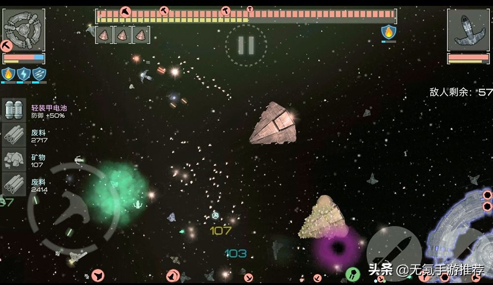 一款宇宙飞船射击类的手游,游戏内闯关的时候有塔防的元素,玩家需要控制自己的飞船来保护自己的基地不被攻击和破坏。游戏中玩家除了升级飞船,还能升级自己的基地,前期基地的攻击还是很厉害的,玩家可以放心让基地来进行战斗。