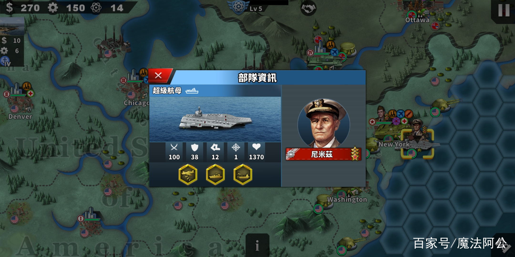 美国的将领也不弱,而且也多。像艾森豪威尔、尼米兹、巴顿等等,这些将领是战场上的一大主力。说到这魔法阿公不得不在吐槽一下游戏的设定,美国将虽多,但我们玩家并不能随意安排,只能选择已出场的将领。这也算是一个平衡吧,毕竟我们可以自己上将。
