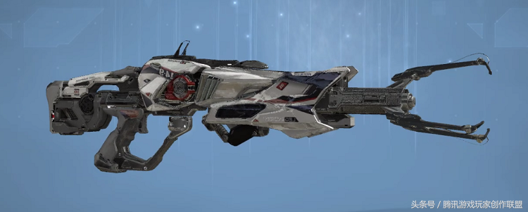 死神的外形和它骇人的名字有些不符,咋一看死神的外形像是一架F1方程式赛车变形而来。死神枪械的骨架由深邃的黑色合金来提高强度,在肩托和握把之类与皮肤接触的地方则替换成了类肤性质的材质,这样的设计会使得持握枪械的时候更加舒适,非常的人性化。死神的外壳由几块洁白的高强度聚合物组成,白色外壳上有一条黑色和红色交织的条纹一直延伸至枪头并渐变为深蓝,上面还写有数字。这种充满速度感的涂装像极了赛车。在死神的霰弹形态下,玩家还可以看到内部露出的红色部件,这些部件像是把F1赛车上的超级发动机拆下来装在枪身一样,具有一种充满了工业气息的设计美感。
