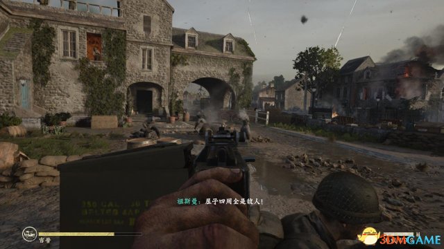 首先要攻陷街道的一处房屋,隔着街道跟房屋前的德军驳火,此时要注意,这批敌人很擅长投掷手雷,所以一有手雷飞过来,丹尼尔斯就要立马将它们扔回去。