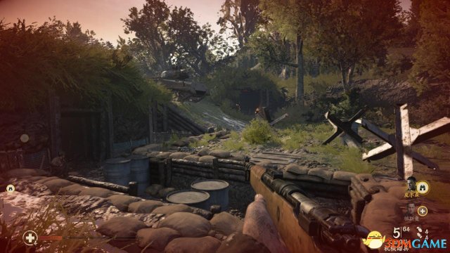 接着进入到下一段战壕内,此时目标更新,要求扫清5个碉堡。