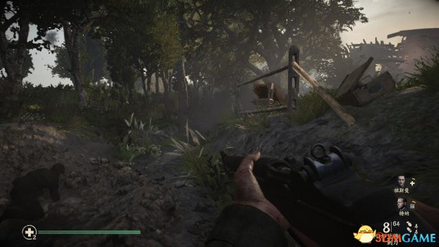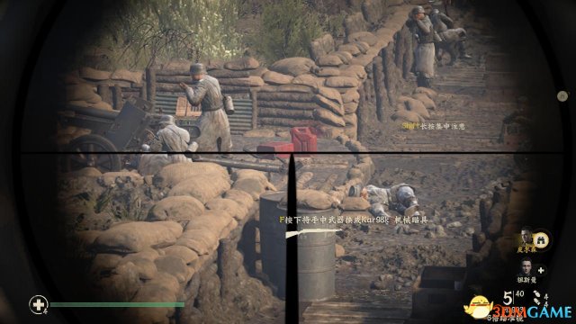 step3.接着沿着战壕往前走,一路上皮尔森、祖斯曼会负责在前面杀敌,这时候丹尼尔斯尽可能躲在后方打冷枪即可,否则在老兵难度下,如果走在前面,很难预料到前方敌兵什么时候冲出来。
