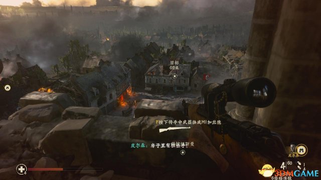 进入屋内需要解决一名被德国兵钳制住的同僚,继续往前走,透过一个窗户可以射击屋内使用迫击炮的敌人,期间不要冲得太靠前,因为左右两侧都是打通的,敌人会从两侧用来,当杀掉使用迫击炮的敌人后,丹尼尔斯就要后退,让队友先冲。