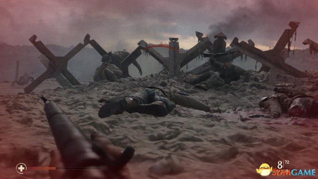 期间一定要跟紧特纳,同时还要注意碉堡内纳粹机枪手更换弹夹(射击停歇)时,丹尼尔斯才冲向前,每到达一个拒马、弹坑时,就逗留一会儿,避避风头,如果硬要冲向前,吃两三颗子弹,丹尼尔斯就会阵亡。
