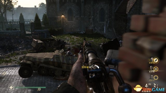 step3.然后登上装甲车使用机枪,扫射街道上蜂拥而至的德军。