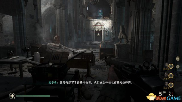 step4.紧接着,丹尼尔斯所在的小队进入到教堂内,选取得弹药以后,丹尼尔斯立马去到教堂内的右侧。