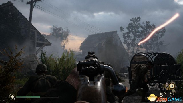 去到房屋旁侧的窗户,朝里面投掷烟雾弹,那么里头的德军就不会再开火,此时就可以对屋内敌人进行扫射。