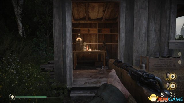在木头碉堡内,可以借助门口转角作为掩体射击战壕内的纳粹兵。