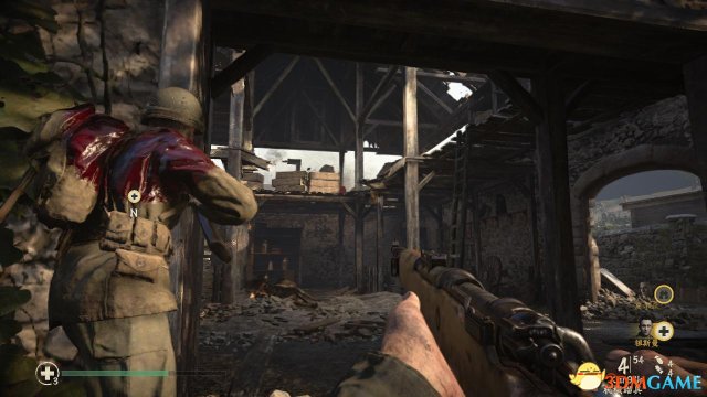 step3.谷仓二层还会有残留的敌人,他们会顺着木板下来,丹尼尔斯可以处于木板旁侧透过缝隙射击上方走下来的敌人,这些德国佬几乎不会注意到丹尼尔斯。