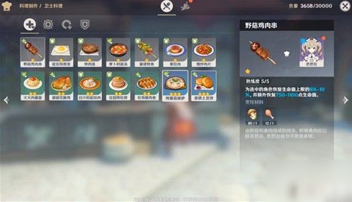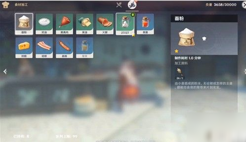 言归正传,食材加工功能需要进入烹饪界面后才能找到,这也是烹饪高级料理的必要手段,能丰富食谱,大部分原材料恢复效果都非常一般。