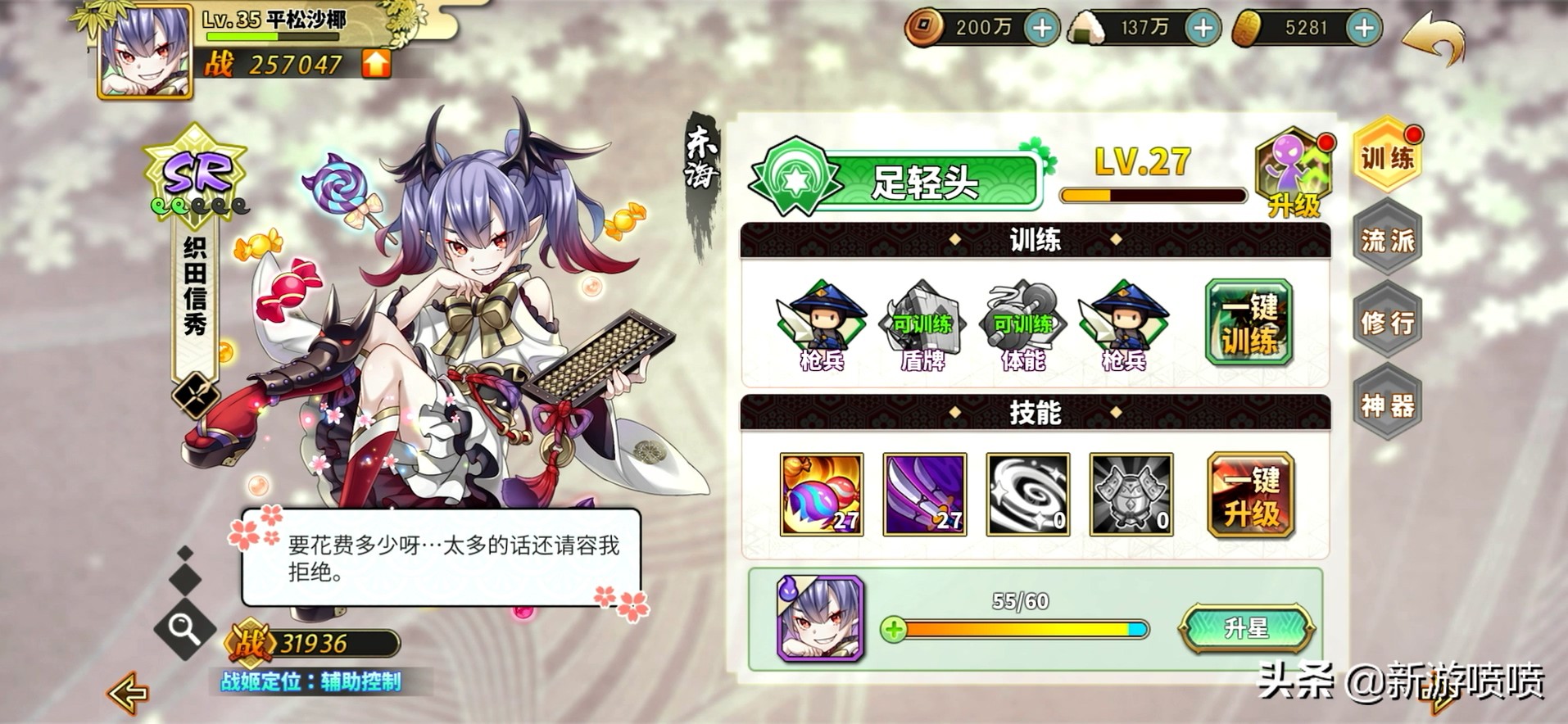 还有这什么玩意城战,不就是日常那些游戏里加个家族然后与别的家族战斗争夺地盘吗?这也叫个城战。说起战斗,为了省事战斗也懒得放大细节,就一堆小兵上去呼啦呼啦一顿胡打乱捶,战斗结束,战斗开个二倍速,也没有什么特别的炫丽特效,有的甚至可以跳过战斗,这不就是妥妥的战力数值游戏吗?游戏开战就已经知道了结局是成功还是失败,这有什么好玩的?