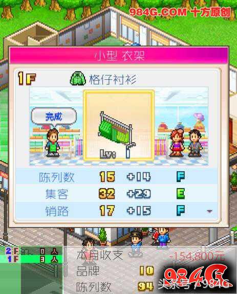 《时尚洋品店》的建筑系统分为货架、设施和楼层,货架的摆放和搭配将直接影响销量和顾客满意度,设施可以获得大量奖牌和金钱,楼层的合理建设则会影响全部系统的发挥。984G十方在此需要提出的建议就是,二周目是绝对避免不了的了,大家在一周目熟悉系统先。