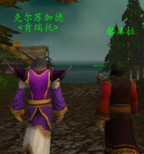 在进小镇的路上你就会看到克尔苏加德和他的学生赫尓库拉,赫尔库拉正向克尔苏加德学习关于通灵术方面的技巧。从对话中可以猜测,克尔苏加德已经听到巫妖王的召唤,过不了多久他就会北上前往诺森德,带回来的就是他和他的诅咒教派,还有瘟疫!