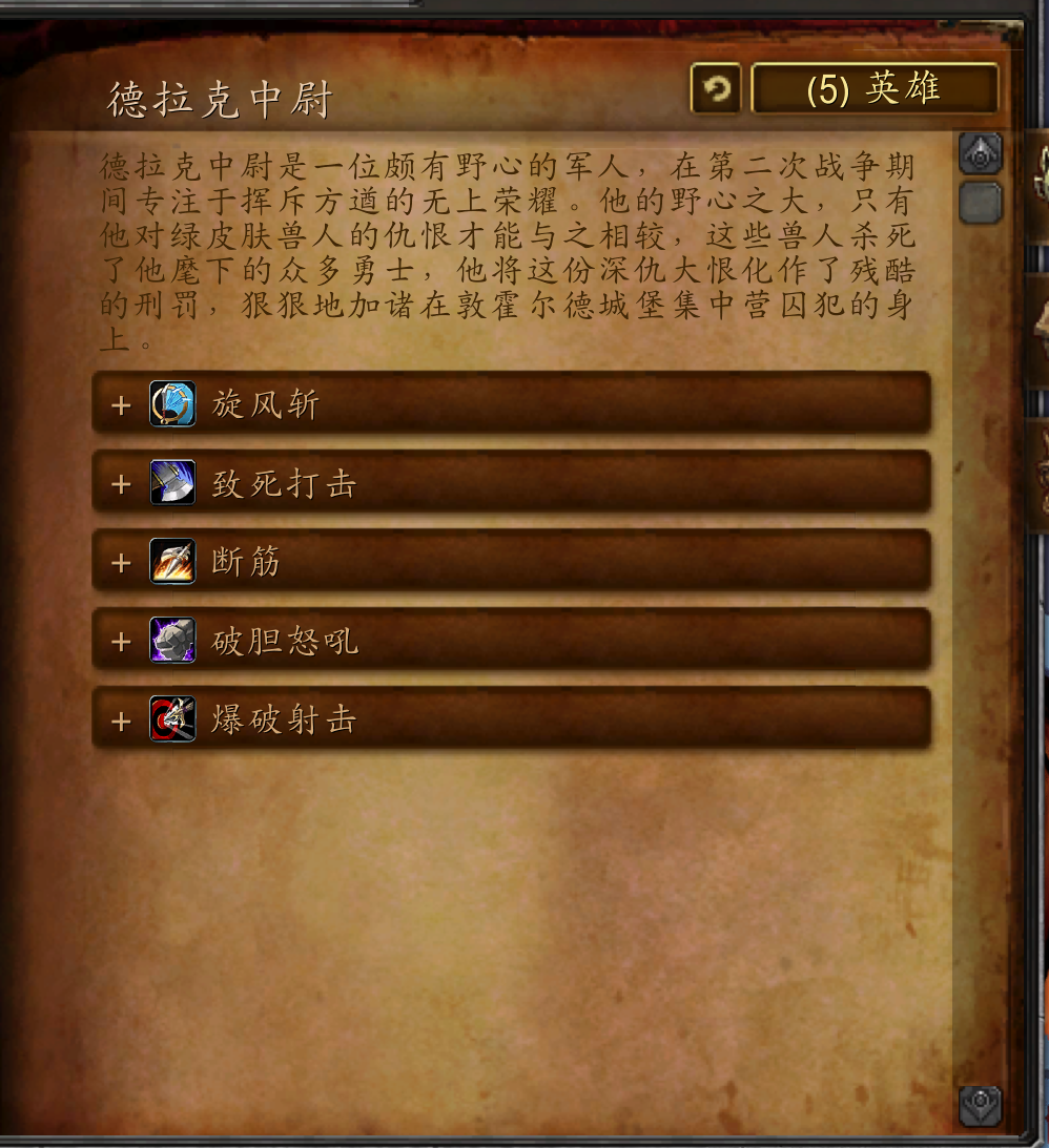 德拉克中尉是一位颇有野心的军人,在第二次战争期间专注于挥斥方遒的无上荣耀。他的野心之大,只有他对绿皮肤兽人的仇恨才能与之相较,这些兽人杀死了他麾下的众多勇士,他将这份深仇大恨化作了残酷的刑罚,狠狠地加诸在敦霍尔德城堡集中营囚犯的身上。