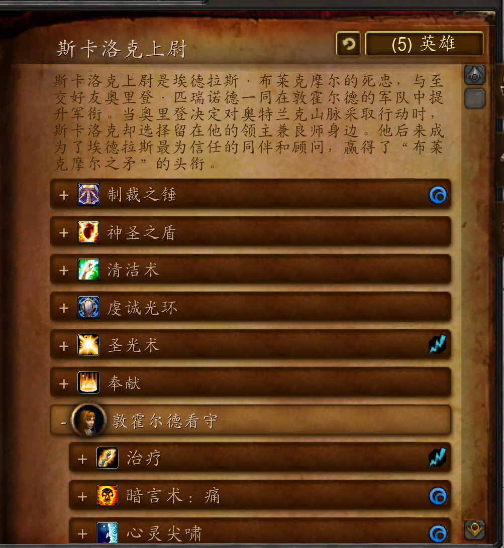 斯卡洛克上尉是埃德拉斯·布莱克摩尔的死忠,与至交好友奥里登·匹瑞诺德一同在敦霍尔德的军队中提升军衔。当奥里登决定对奥特兰克山脉采取行动时,斯卡洛克却选择留在他的领主兼良师身边。他后来成为了埃德拉斯最为信任的同伴和顾问,赢得了“布莱克摩尔之矛”的头衔。