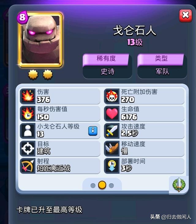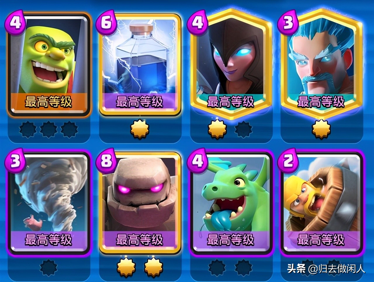 我是归去做闲人,如果您觉得我的内容能给您带来帮助的话,关注我(全网同名),每日更新皇室战争萌新各种全面教学,热门天梯卡组讲解,各类脏套路,卡牌属性强度分析。致力于让每个玩家都不走弯路,你的支持就是我创作的动力!谢谢!